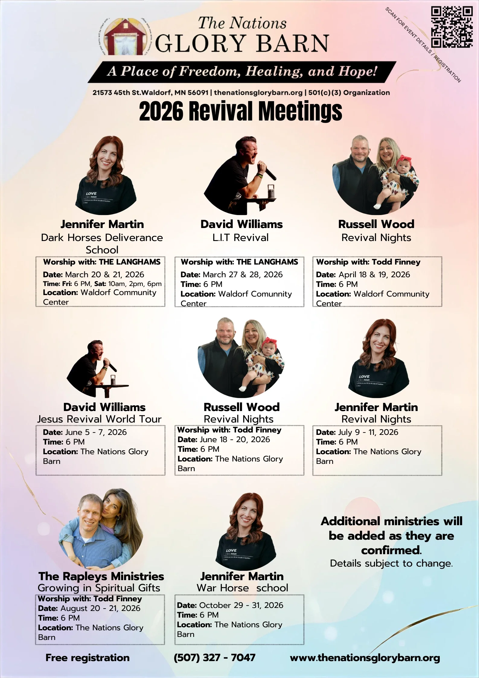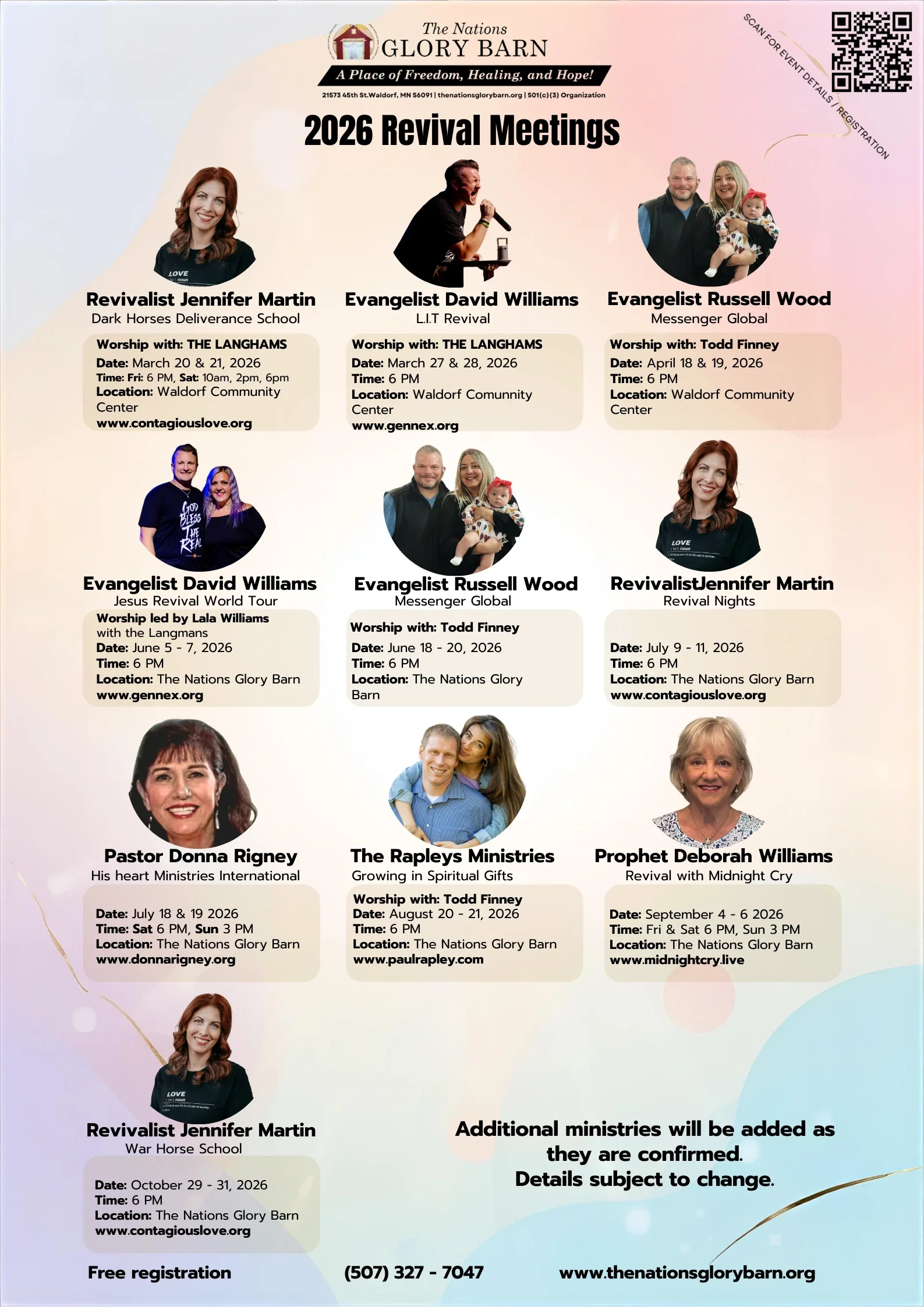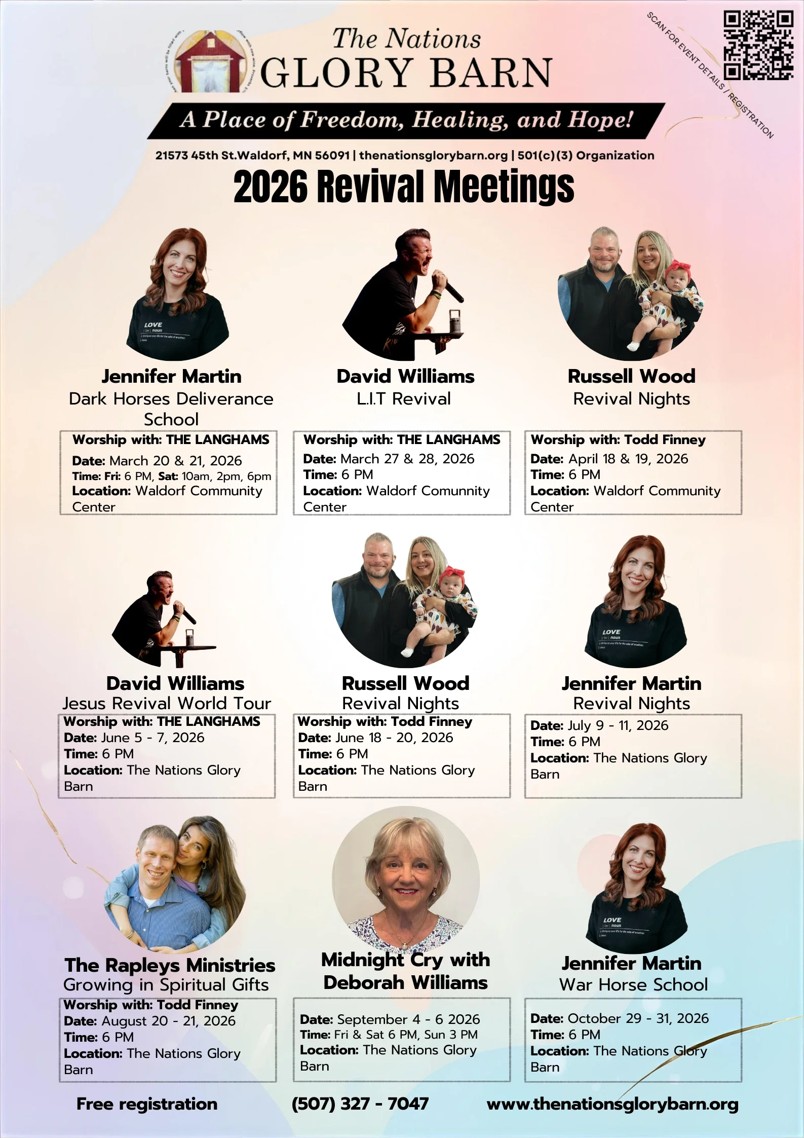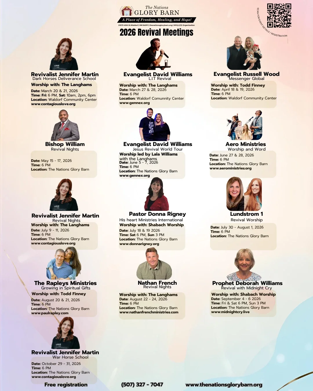 The Nations Glory Barn exists through the faithfulness and generosity of those who believe in what God is doing in this place. Your partnership helps us host revival gatherings, welcome visiting prophets, and steward this space for the work of the Lord.
